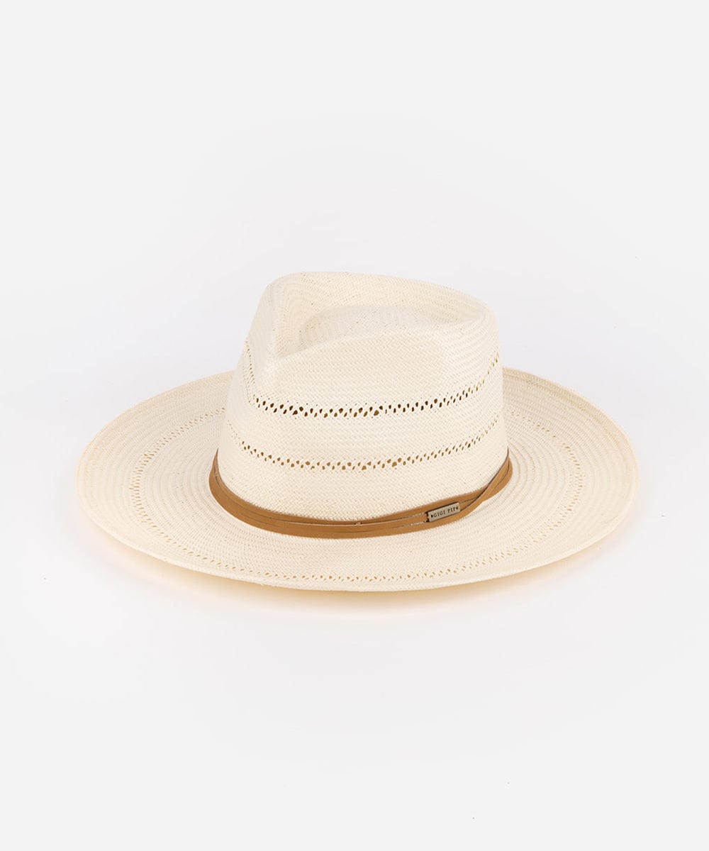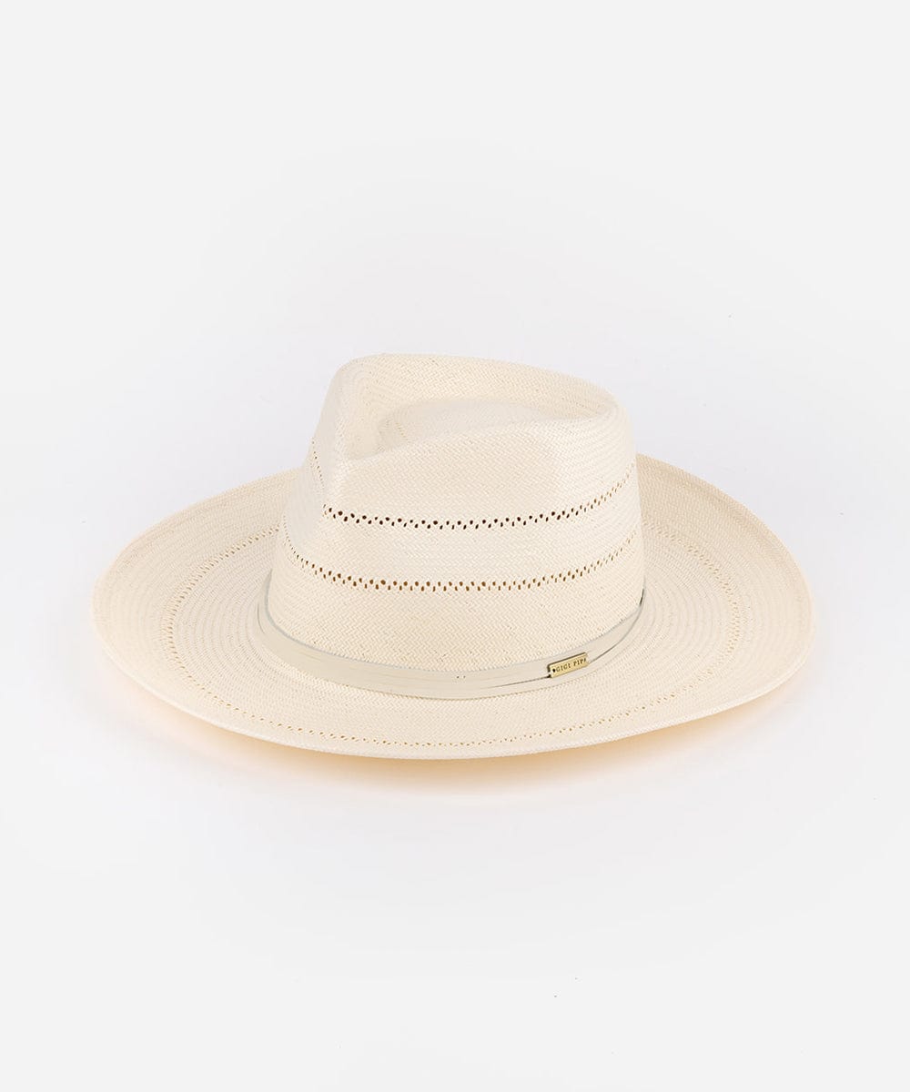 Meet the Arlo Straw Fedora—your warm-weather upgrade with a touch of sophistication. Featuring a classic teardrop crown and a stiff upturned brim, Arlo is crafted from finely woven straw with handwoven venting for a breezy, breathable feel and a textured, artisan look. It’s lightweight, structured, and ready for sunshine-filled days. Finished with a hand-sewn leather band, this fedora looks great on its own or layered with your favorite accessories to make it uniquely yours. From farmers markets to weekend getaways, the Arlo Fedora brings effortless style and all-day comfort. It’s the straw hat that goes with everything—and makes every outfit feel a little more polished.