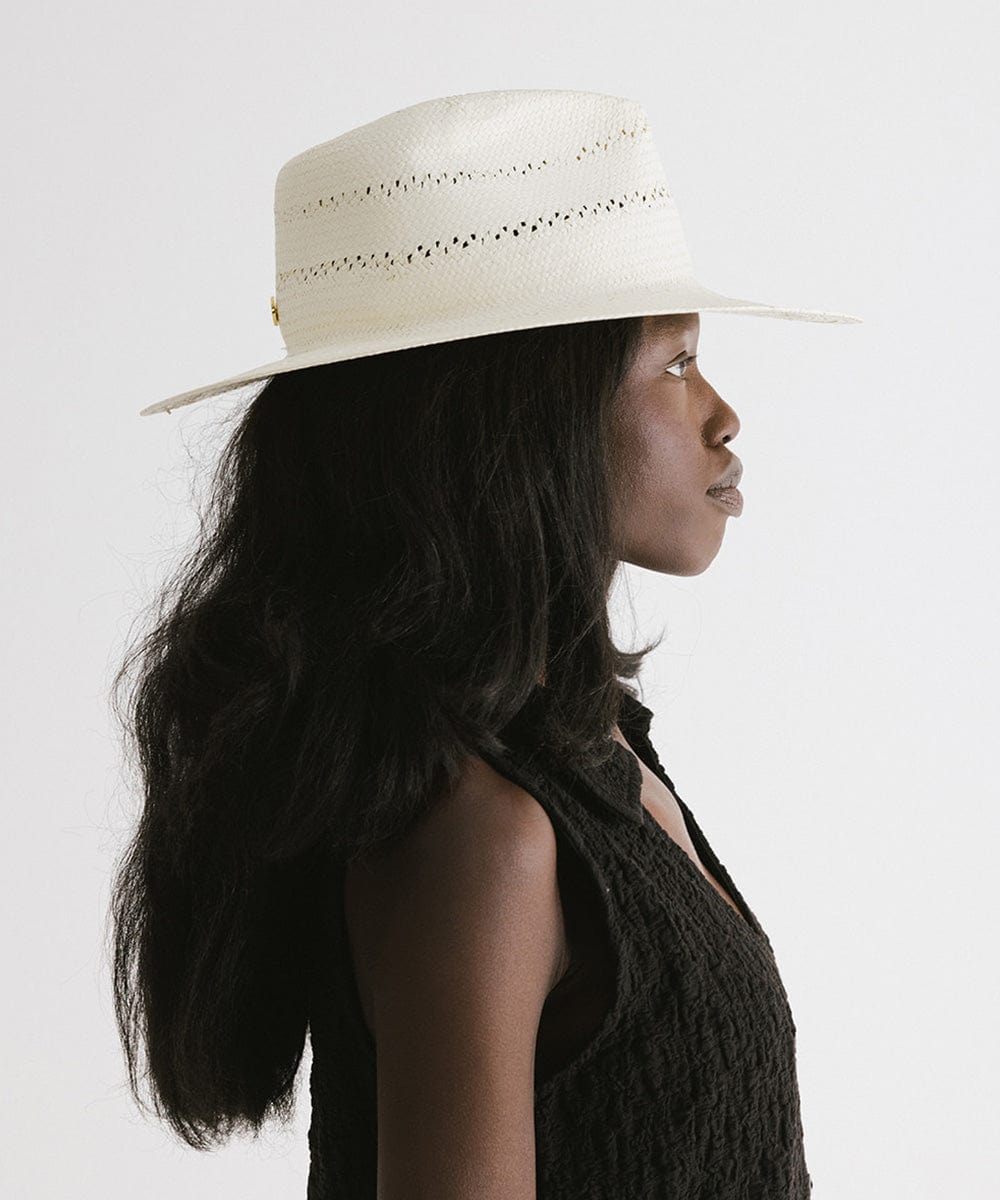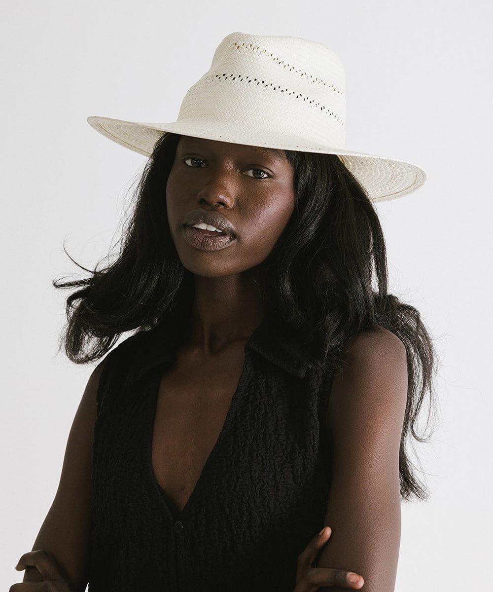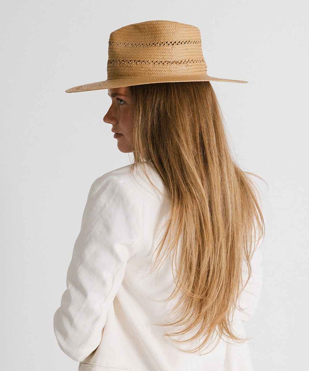 The Sloan Fedora Straw Hat is your go-to for warm-weather sophistication with a modern twist. Crafted from fine paper straw, Sloan is lightweight, breathable, and intricately woven for a refined yet relaxed feel. Delicate venting details not only add visual interest, but also help keep you cool on sunny days. The modern fedora silhouette offers structure and polish, making it easy to pair with everything from sundresses to tailored linen looks. Whether you're heading to brunch, exploring the coast, or lounging under the sun, Sloan brings effortless elegance and all-day comfort. It’s the perfect piece to elevate your everyday summer style without trying too hard.
