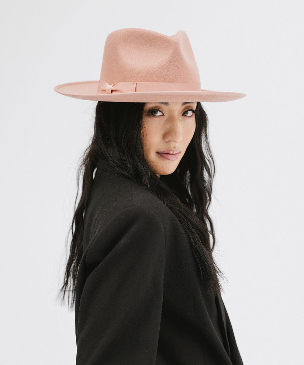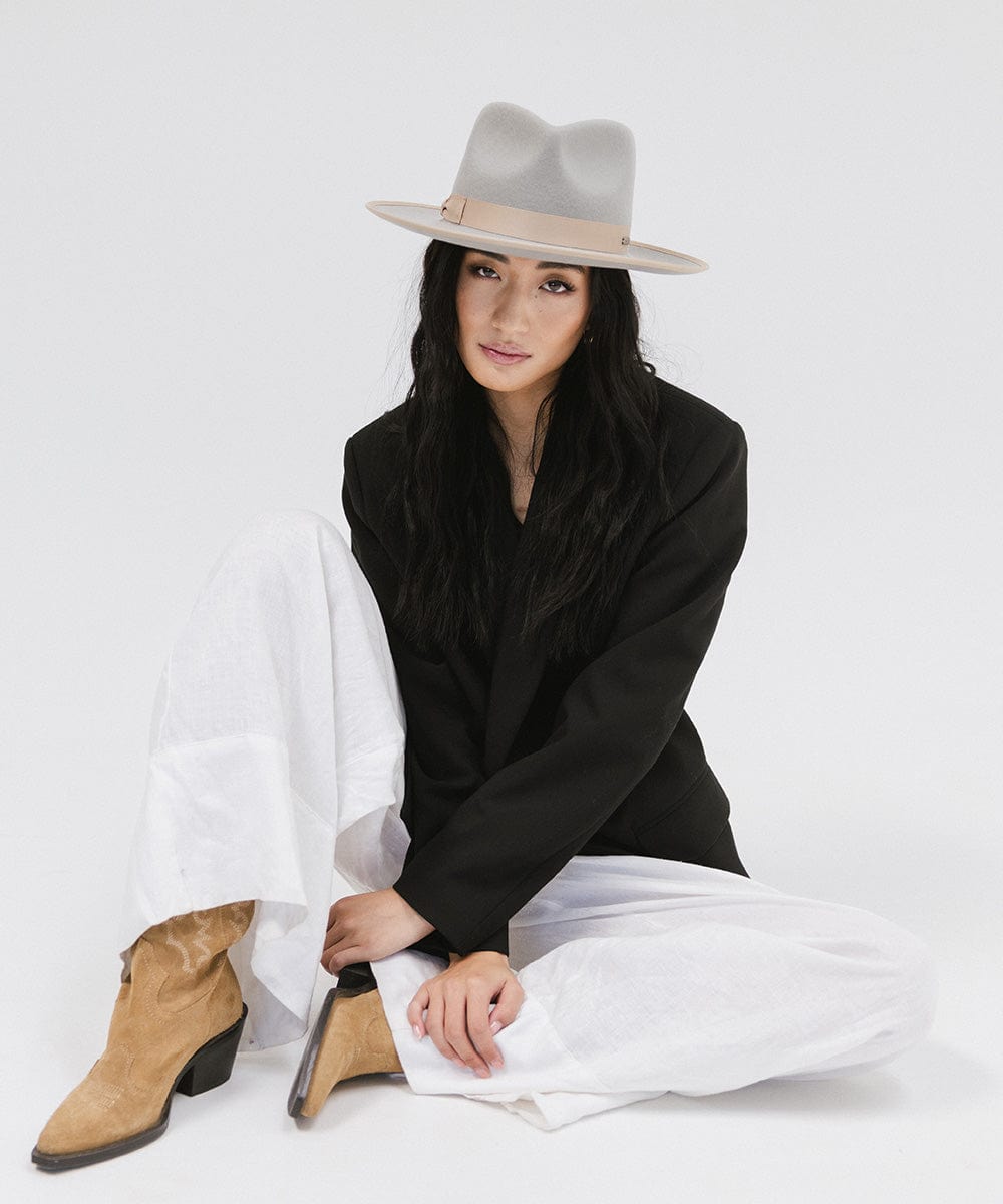 Meet the Monroe Rancher—our bestselling felt fedora hat that defines timeless style. Crafted from 100% wool, this women’s fedora is designed to be the ultimate wardrobe staple. Its teardrop-shaped crown and stiff, upturned brim create a structured yet flattering silhouette that’s equal parts bold and refined. Finished with a tonal grosgrain band, the Monroe Rancher adds understated elegance to any look, whether you're headed to brunch, the office, or a weekend getaway. This classic wool fedora hat pairs effortlessly with everything from denim and boots to dresses and coats, making it your go-to hat season after season. Loved for its versatility and elevated design, the Monroe Rancher is more than a bestseller—it’s a forever favorite.