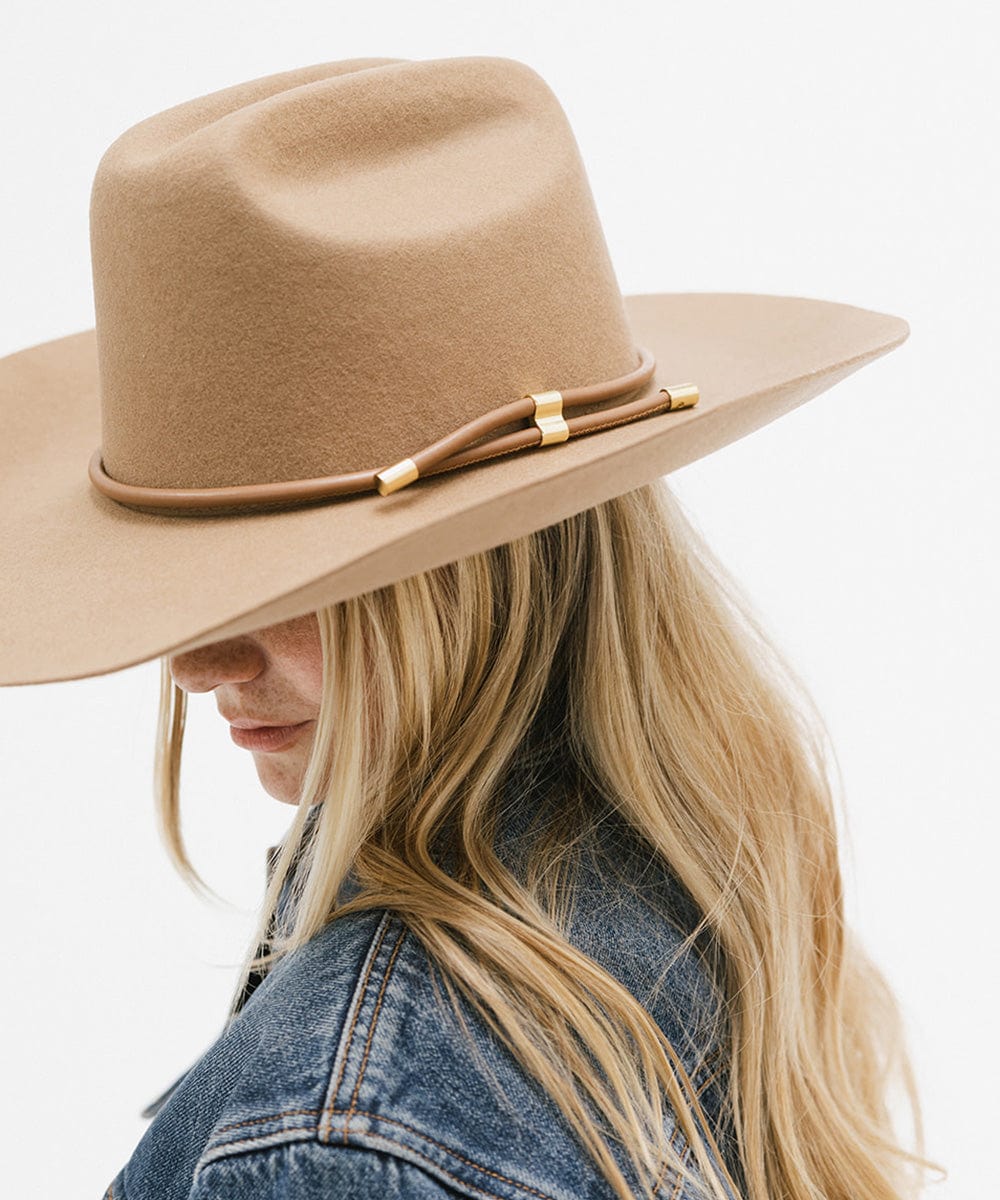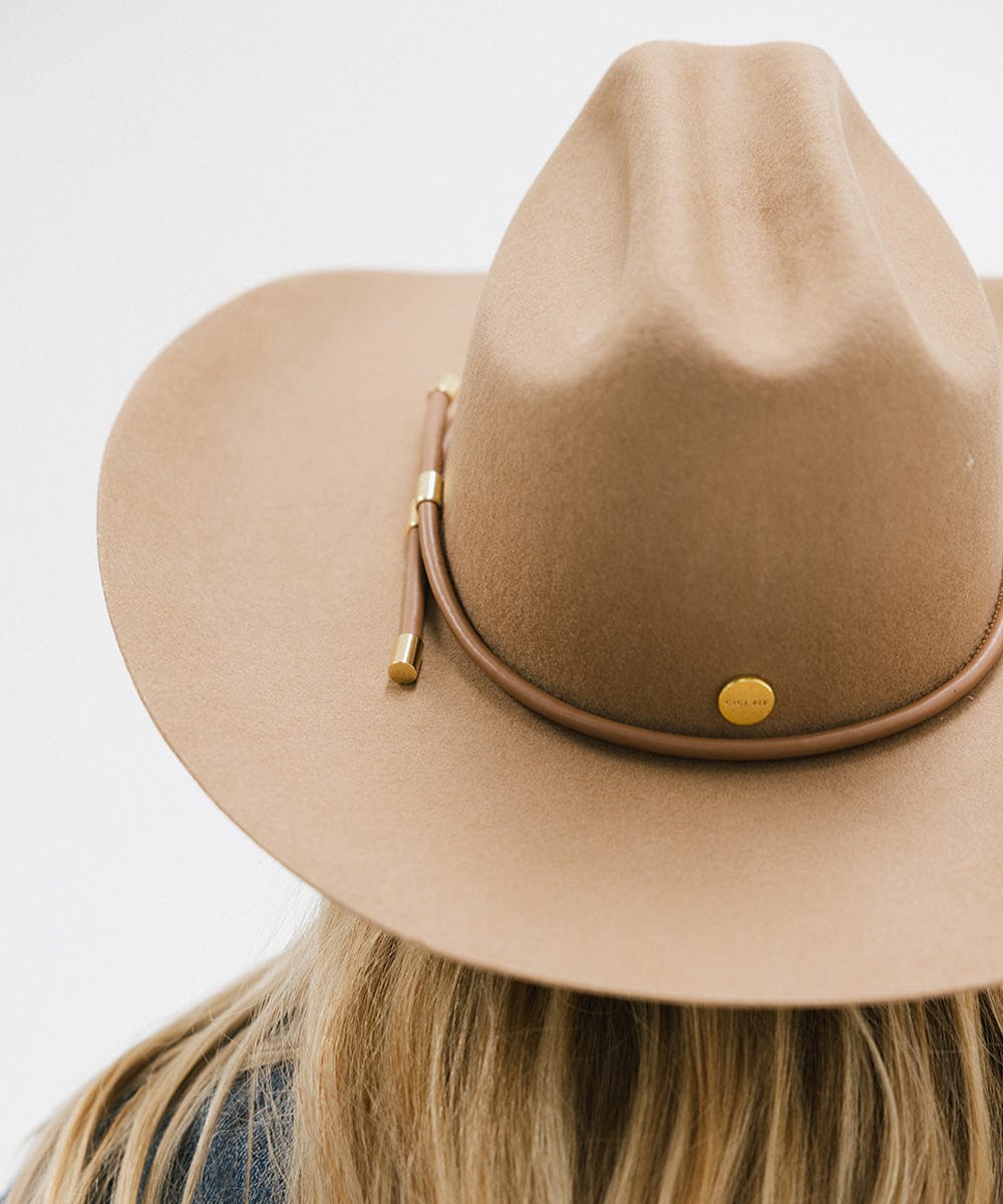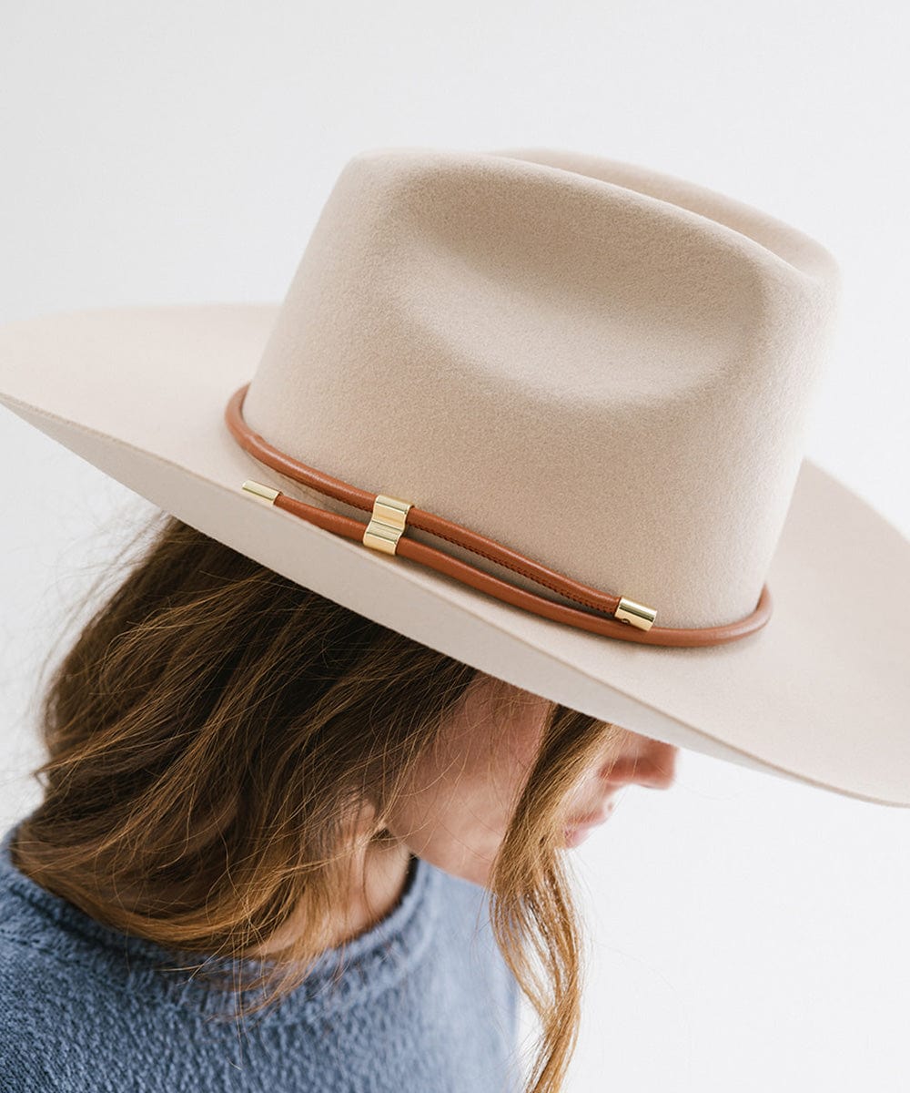 Everything you need in a hat band - adjustable, removable + confidence-boosting. A minimalist vegan leather hat wrap band featuring gold detailing to naturally elevate any look.