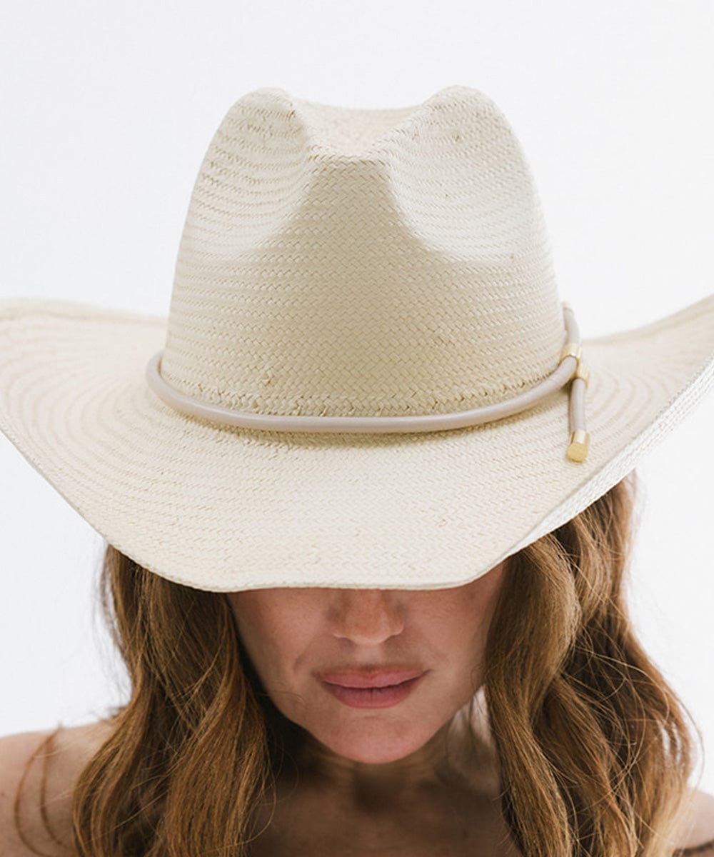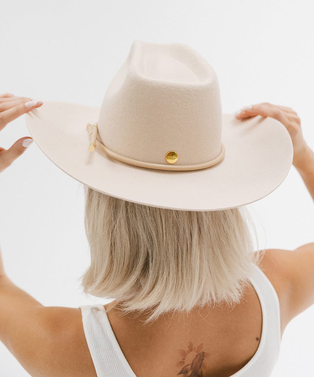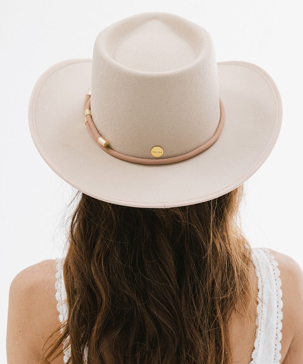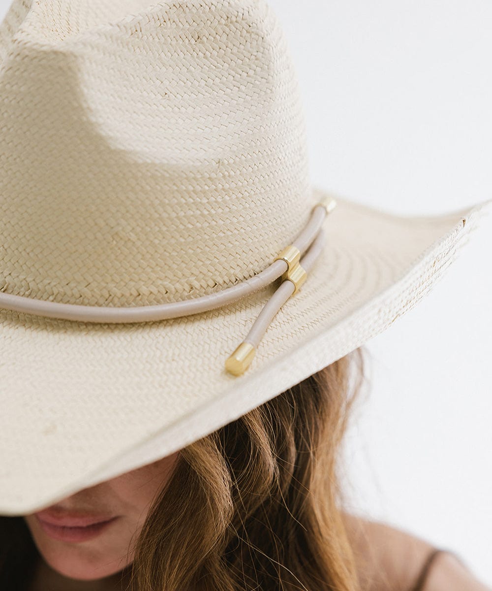 Everything you need in a hat band - adjustable, removable + confidence-boosting. A minimalist vegan leather hat wrap band featuring gold detailing to naturally elevate any look.