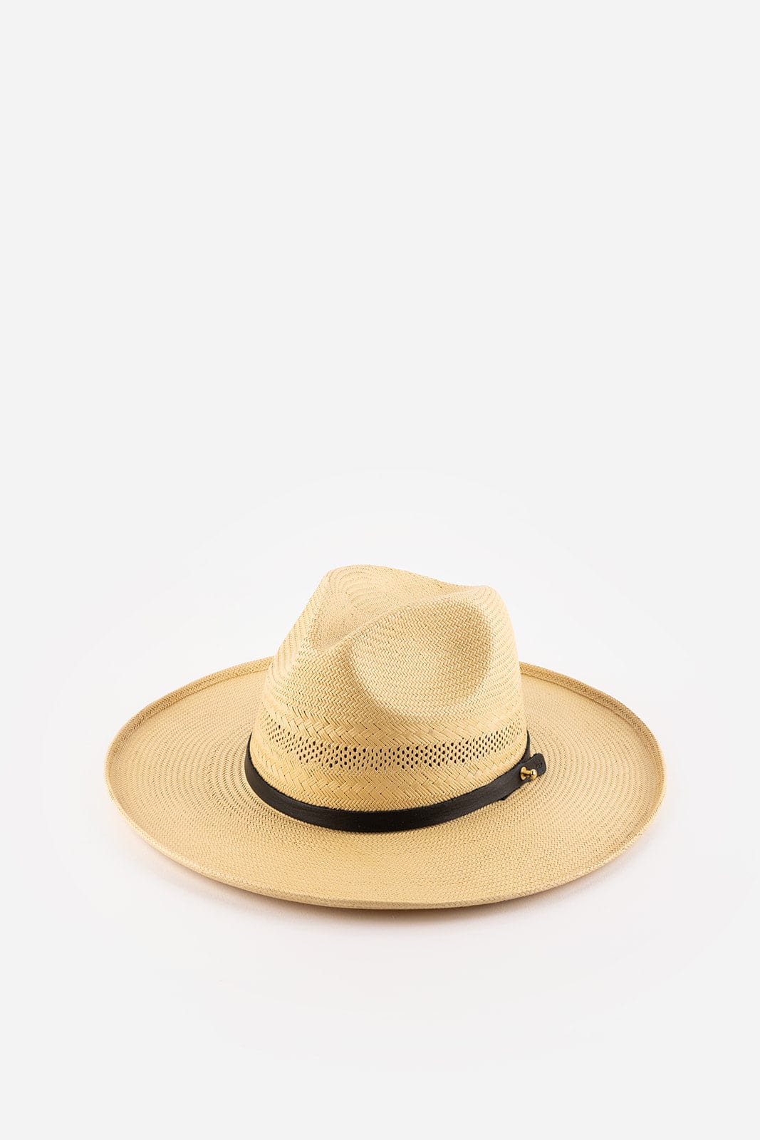 The Saguaro Fedora Panama Straw Hat is your go-to for stylish sun protection and breathable comfort on hot summer days. Featuring a pinched fedora crown and a wide brim with a slightly upturned edge, this hat offers flattering structure and plenty of shade without sacrificing style. Its intricately handwoven venting adds texture while allowing airflow to keep you cool and comfortable. Finished with a sleek matte black leather band, the Saguaro delivers a clean, elevated look that pairs easily with any warm-weather outfit. It also includes a protective duster bag for safe storage and travel—making it as practical as it is polished. Saguaro is summer-ready and endlessly wearable.