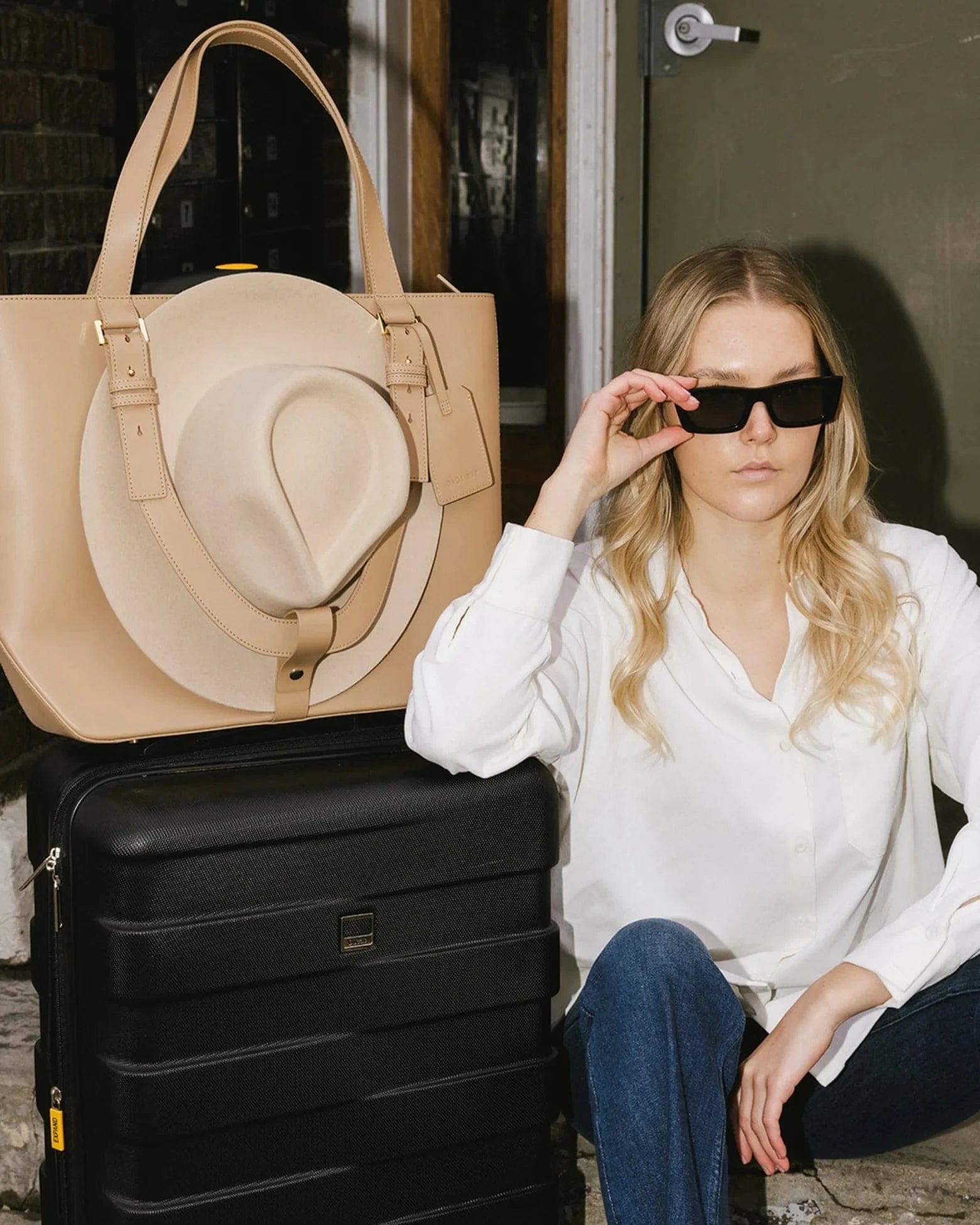 Meet the Hayes Hat Carrying Tote: the ultimate accessory for hat lovers on the go. Crafted with detail + designed for convenience, this tote ensures your favorite headwear stays protected + stylish wherever your adventures take you. Featuring a padded interior Laptop sleeve + Trolly Pass for traveling, this innovative tote offers optimal protection + ease, allowing you to carry your hats with style + confidence.