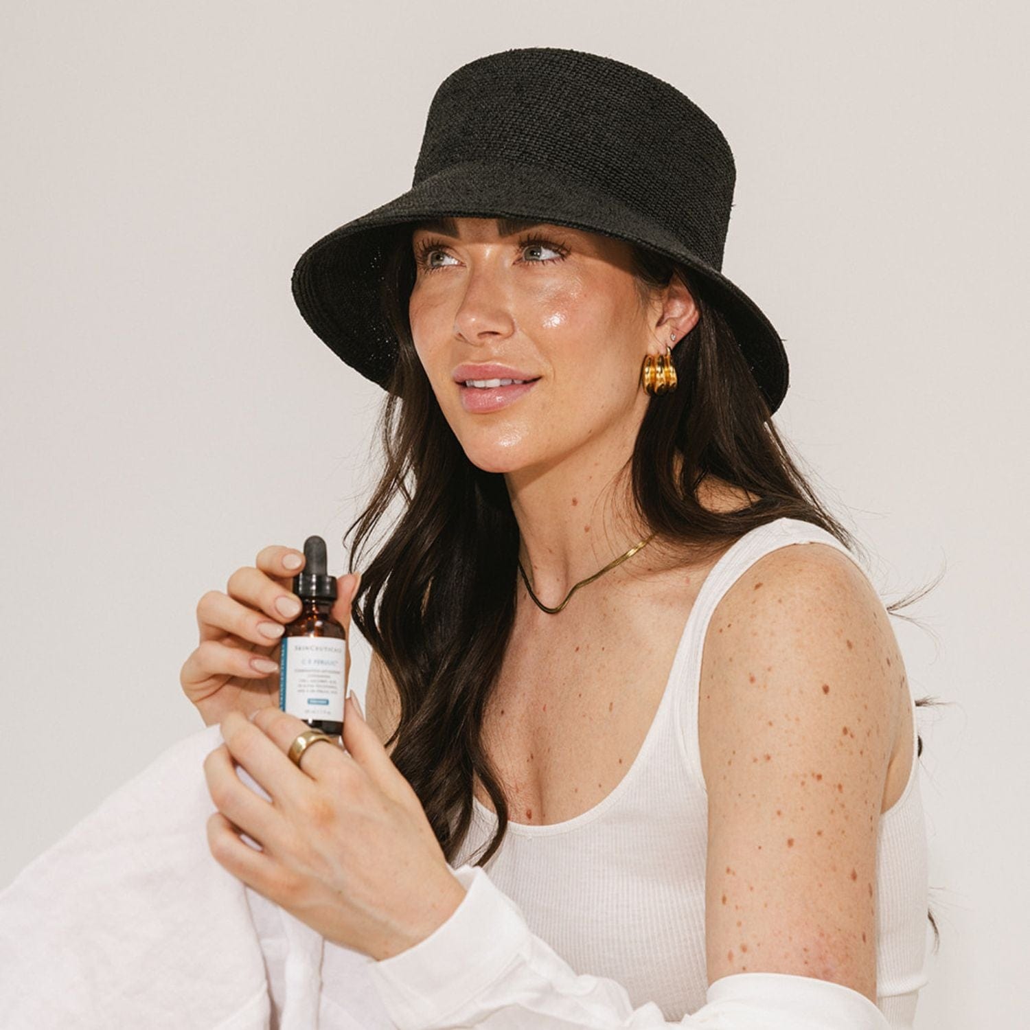 Sarah has been a longtime Gigi Pip muse! Not just for her style, but because a good hat is a skincare essential. From wide brims to sunnies, she knows that sun protection is all about layering up. She’s here to share her go-to tips for keeping your skin healthy while looking + feeling amazing. Whether you’re deep into skincare or just getting started, Sarah’s got you covered—literally.