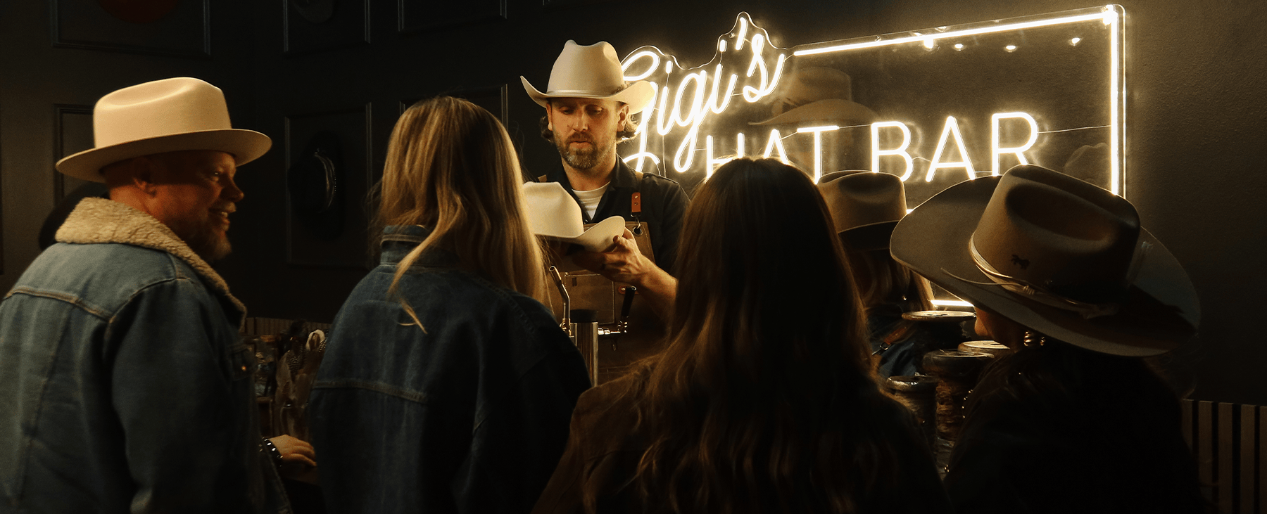 We are equipped to come to you in our mobile showroom with all of the equipment needed to treat your special group (of men + women) to an unforgettable night of hat fittings, trimming, custom hat burning + more. Give us a call or contact us below for individualized pricing + to get your event on the calendar.