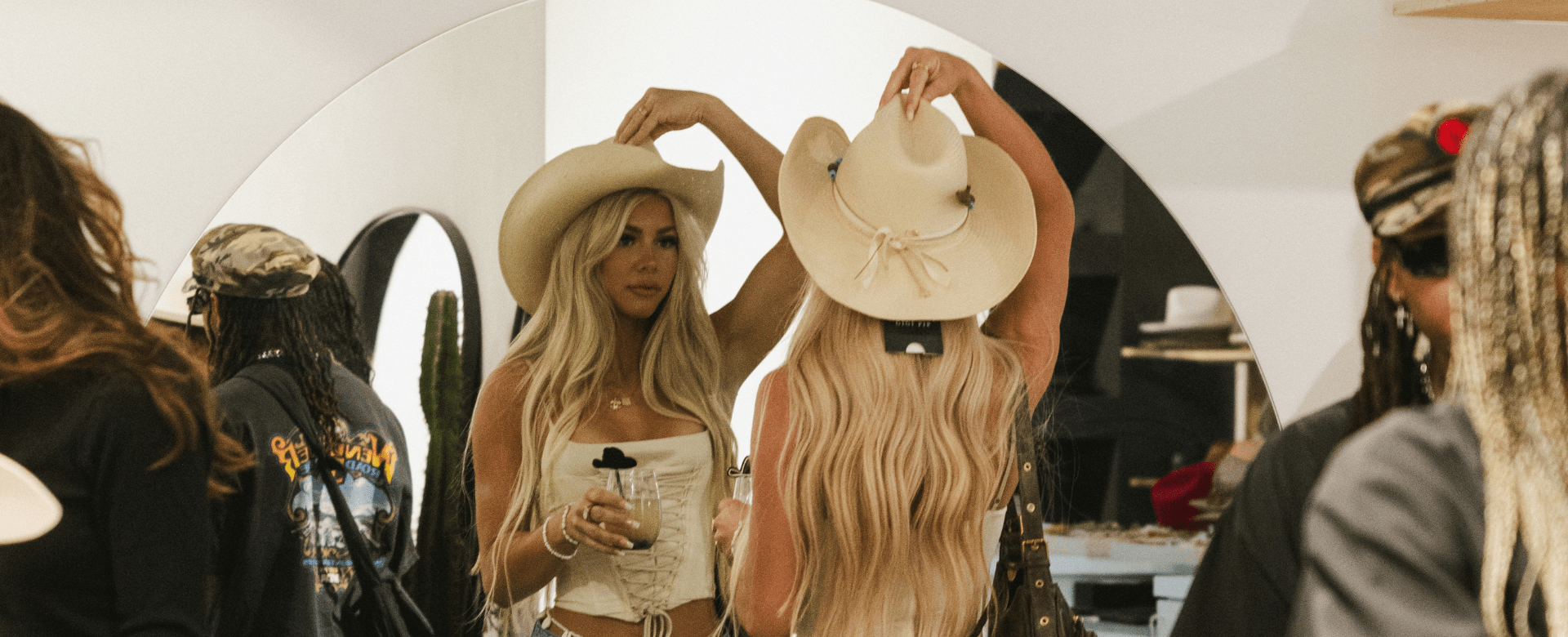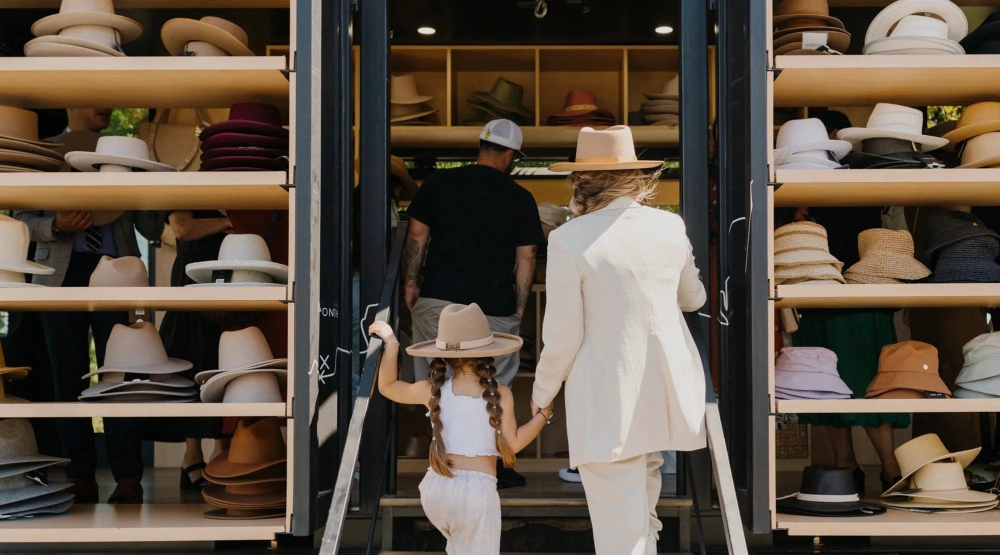 We're on our way to Cowboy Christmas and we're bringing ALL of our hat tricks. We'll be there with our mobile showroom (yes, the trailer will be inside!) offering custom hat making, steaming + shaping, hat burning, trucker hat customizations, 1x1 hat expert advice + more! Bring your besties + stop by, you don't want to miss this! xx