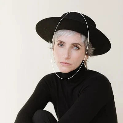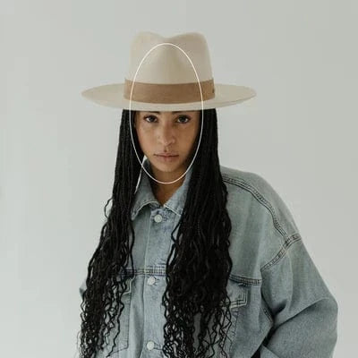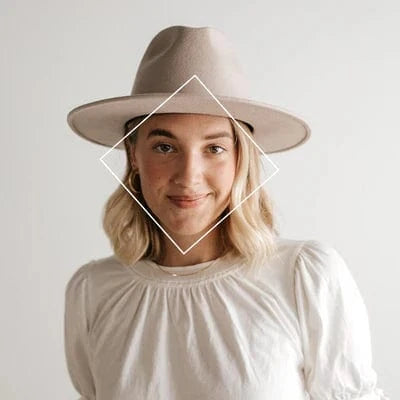 Hats with wide brims and crowns—like the Teddy, Dakota, Zephyr, Miller, or Amelia—are perfect for balancing your proportions. Look for styles that come down onto the forehead rather than sitting high on the head. This helps create the illusion of width and minimizes vertical length.