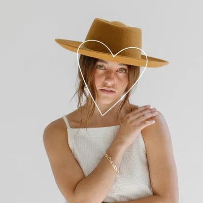 Hats like the Monroe, Zephyr, or Rowan are perfect designs for a heart-shaped face, offering shape and style without adding bulk up top.