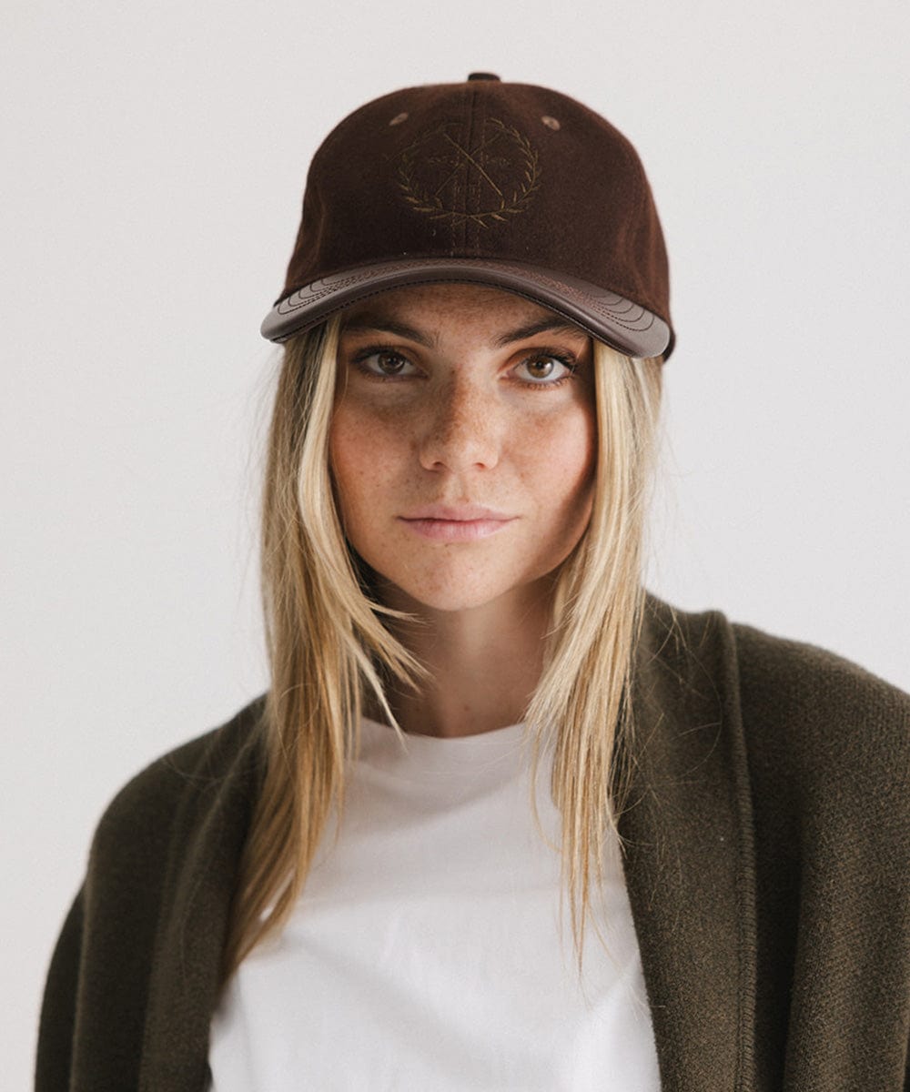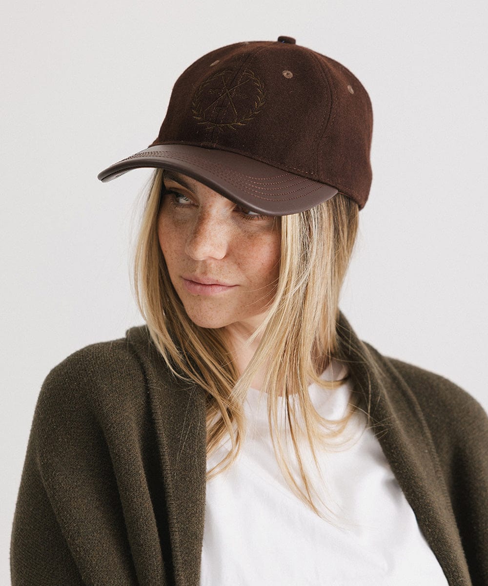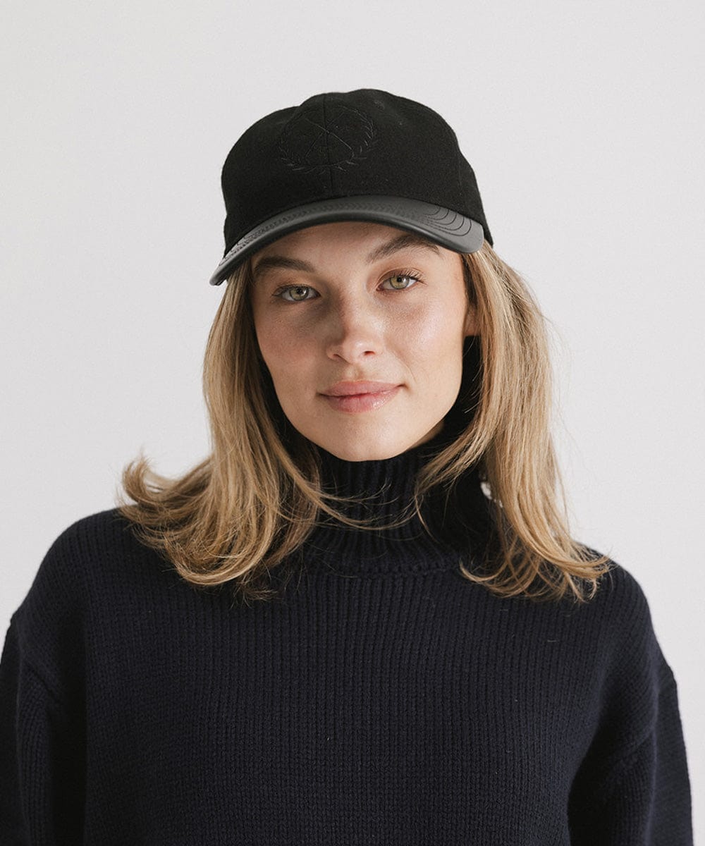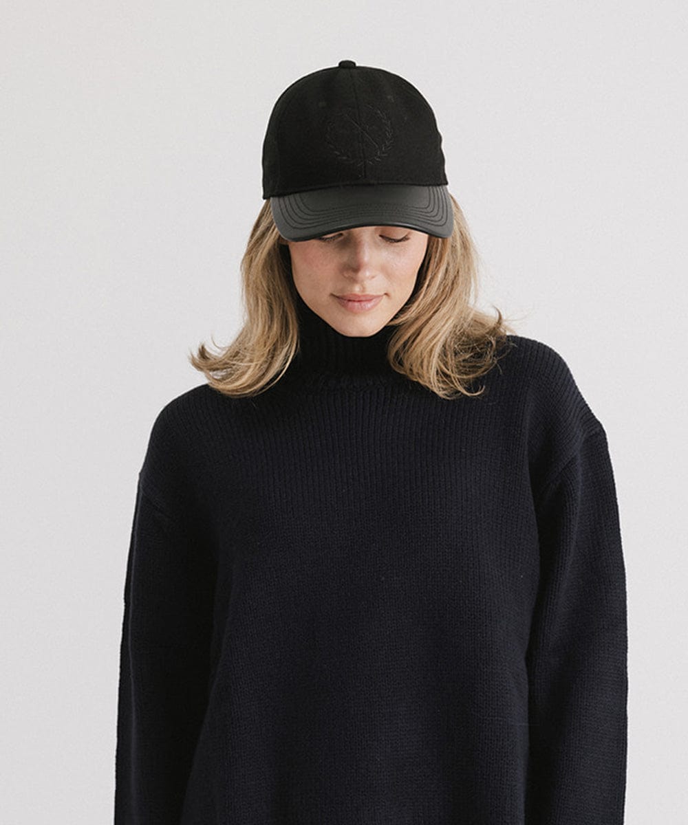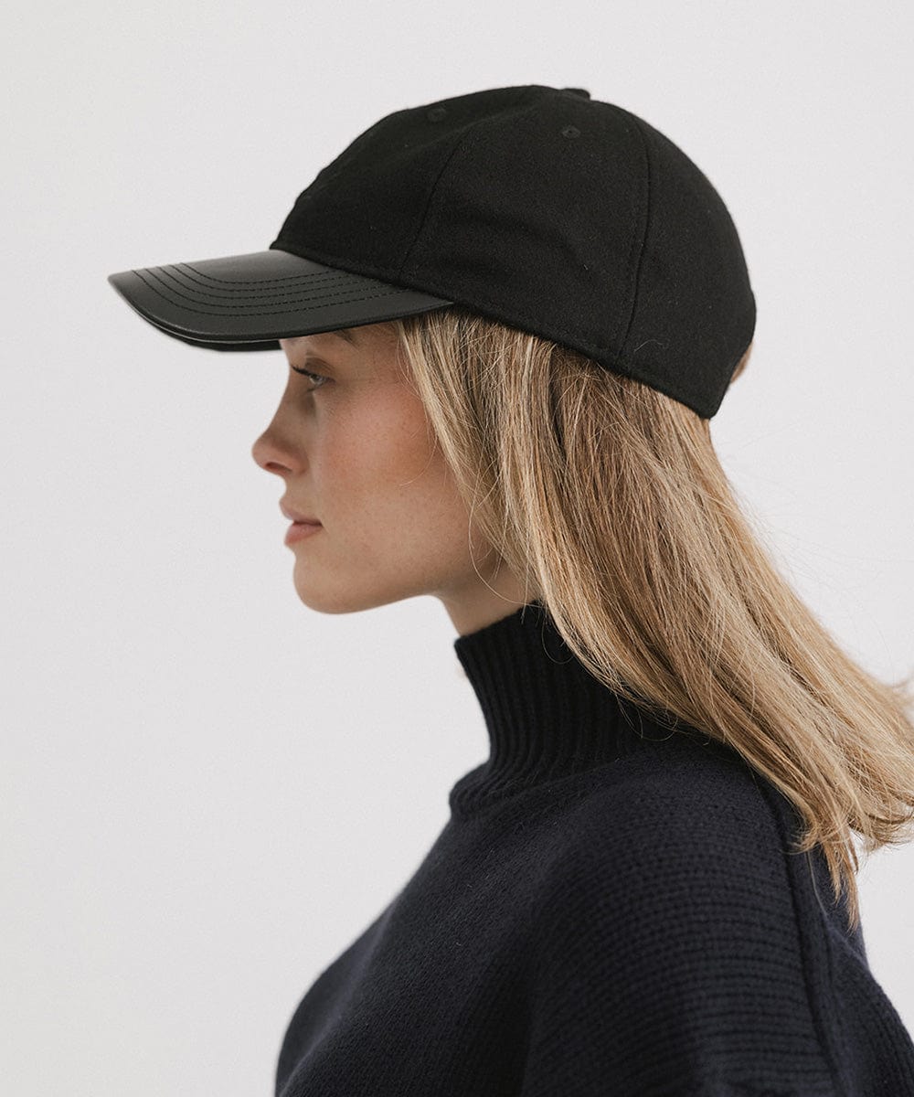 Top off your winter look with this sleek ball cap made of 100% wool felt + faux leather brim. This cap adds an edgy yet refined touch to your cold-weather outfits. The relaxed fit design and adjustable strap ensure a comfortable, customized fit, while the luxurious finish makes it a standout accessory.