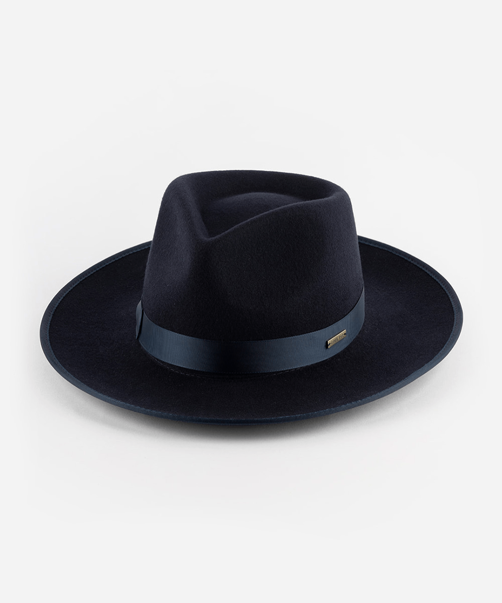 The Monroe Rancher is a hat with a teardrop shaped crown, stiff upturned brim, and is paired with a tonal grosgrain band. These beautiful combinations make this felt fedora hat a classic.
